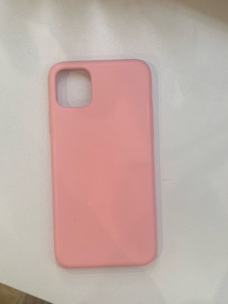 Custodia protettiva per iPhone 11 Pro Max in colore rosa. Materiale in silicone morbido al tatto. Design che copre i bordi del telefono.