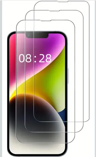 Protettore di schermo in vetro temperato per iPhone. Compatibile con iPhone 15, 14, 13, 12, 11, Pro Max, XS Max, XR, 8, 7, 6s, 6 Plus. Include 4 pezzi, aperto solo per le foto, arriva ben protetto. Visita il mio profilo per trovare altri articoli a buon prezzo.