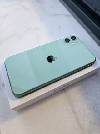 Telefono mobile Apple iPhone 11 in colore verde con 128GB di spazio di archiviazione. Funziona perfettamente ed è in ottime condizioni, senza graffi e con lo schermo intatto. Viene fornito con la batteria caricata e formattata con iOS 26.2. Capacità della batteria: 76%. Incluso: - Telefono iPhone 11 verde 128GB - Scatola originale con documentazione - Custodia blu - Puntale per SIM - Adesivi Apple. NON incluso il caricatore.