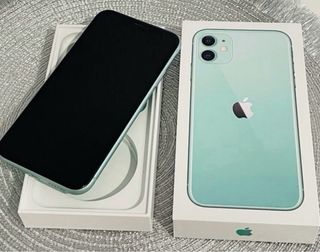 Telefono cellulare iPhone 11 128 GB, in ottime condizioni, senza urti né graffi. Colore verde acqua. Include: caricabatterie completo (cavo + testa), auricolari bluetooth wireless, custodie e protezione per lo schermo in idrogel.
