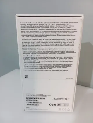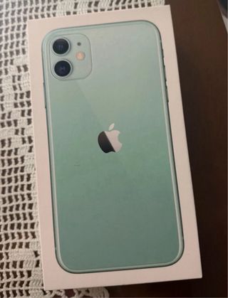 Scatola originale per iPhone 11 in colore verde. Include cavo del caricatore e chiave.