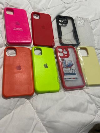 Lotteria di cover per iPhone 11 con diversi design. - Cover trasparente con design di Rick e Morty. - Cover trasparente con design di astronauta e pianeti. - Cover trasparente con design di fulmini. - Cover trasparente con design di foglia d'acero. - Cover marrone. - Cover verde scuro. - Cover grigio scuro. Tutte a 7 euro. Ritiro possibile ad Alcalá de Henares o a Madrid in alcune occasioni.