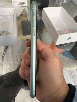 Telefono cellulare iPhone 11 in colore verde. Si vende con la sua scatola originale. - Schermo Liquid Retina HD. - Sistema di doppia fotocamera. - Chip A13 Bionic. È in perfette condizioni, batteria nuova, senza un solo graffio