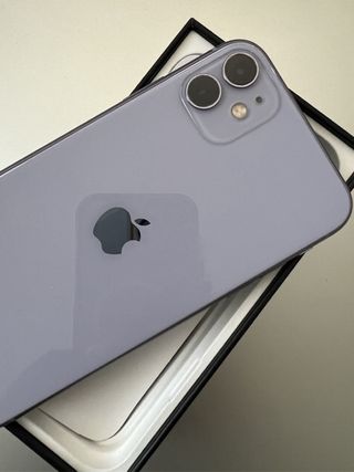 Telefono cellulare iPhone 11 in colore viola. Ha già 2 anni ma funziona ancora perfettamente, l'unica cosa è che la salute della batteria è al 68%