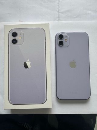 Telefono cellulare iPhone 11, colore malva in perfette condizioni. Capacità 128GB. Colore viola. Batteria al 75% della capacità. Include 2 vetri temperati e 11 custodie. Funziona tutto e mai riparato. Include scatola originale e caricabatterie originale.