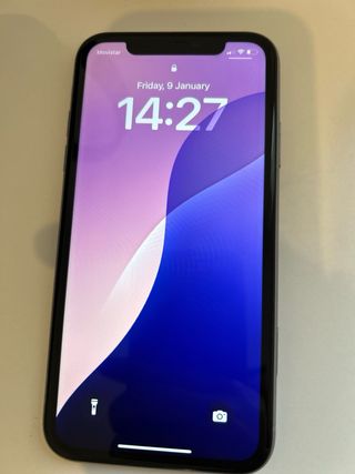 Telefono cellulare di colore viola con capacità di archiviazione di 64GB. Stato della batteria 73%. È in ottime condizioni poiché l'ho conservato molto bene. Non presenta difetti nel suono o nello schermo. - Schermo da 6,1 pollici. - Sistema a doppia fotocamera. - Chip A13 Bionic.