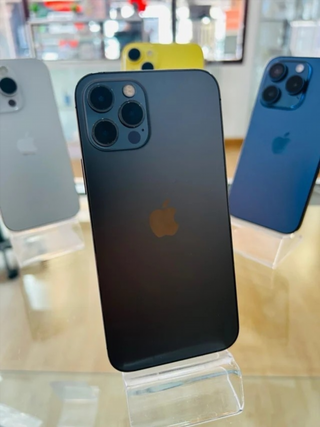 Telefono cellulare iPhone 12 Pro in colore blu con 128GB di spazio di archiviazione. Design elegante e moderno. Schermo nitido e vibrante. Sistema di tripla fotocamera avanzato.