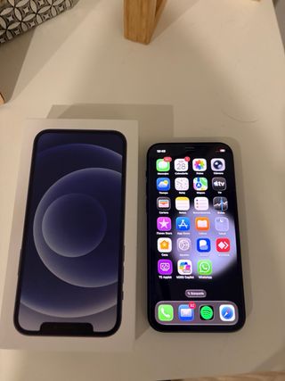 Telefono cellulare iPhone 12 con 128GB di spazio di archiviazione. - Colore: (Non specificato) - Capacità: 128GB - Scatola originale. - Vetro temperato nuovo. - Varie custodie in regalo. - Stato batteria: 94%.