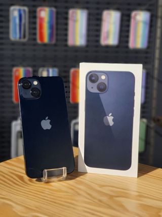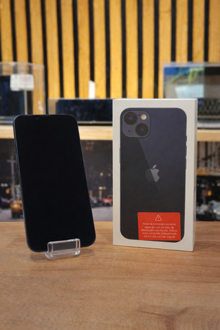 iPhone 13 - Capacità di archiviazione 128GB. Memoria RAM 4GB. Salute batteria 85%. Schermo Super Retina XDR da 6,1 pollici. Fotocamera dual da 12MP. Chip A15 Bionic. Resistenza all'acqua e alla polvere (IP68). Porta di ricarica Lightning. Finitura Midnight (nero). ♻️ Telefono ricondizionato con segni d'uso che non influiscono sul funzionamento.
