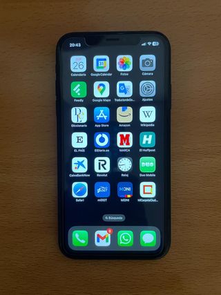 Telefono cellulare iPhone 11 con 64GB di spazio di archiviazione. Funzionamento perfetto e in ottime condizioni estetiche. - Schermo da 6.1 pollici. - Fotocamera doppia da 12MP. - Chip A13 Bionic. La custodia nella foto è in omaggio. Non include la scatola.