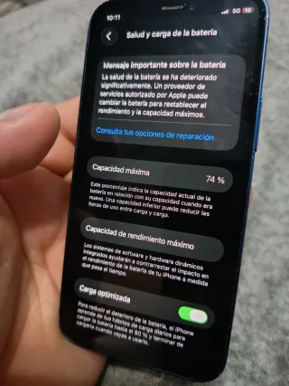 Telefono cellulare iPhone 12 con 64GB di spazio di archiviazione. Ha il display posteriore e la batteria nuovi appena installati, ho installato anche il display anteriore ma è caduto appena l'ho preso e ha un piccolo graffio nell'angolo. Per il resto, da quando è stato riparato non è stato utilizzato e la batteria non viene rilevata, ma è nuova appena installata. L'ho riparato spendendo 150, lo volevo solo per recuperare le foto, quindi lo vendo.