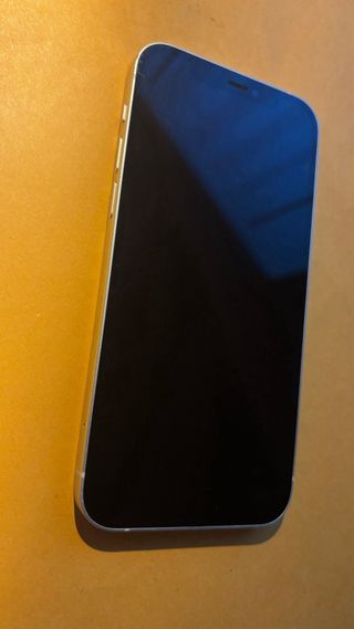 Telefono cellulare iPhone 12 in colore bianco. Capacità di archiviazione 64GB. Tutto funziona. Batteria al 76%, sufficiente per l'intera giornata.