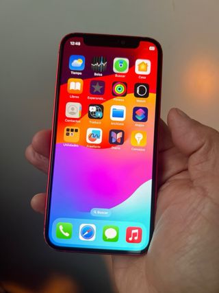 Telefono cellulare iPhone 12 Mini in colore rosso. - Schermo da 5,4 pollici. - Fotocamera doppia da 12 MP. - Chip A14 Bionic. FaceId non funziona, batteria 78%. Guardate bene le foto, è esattamente come appare. Leggete attentamente il contenuto.