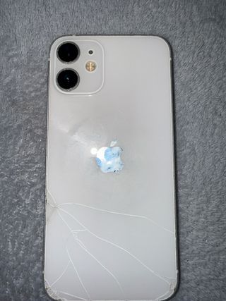 Telefono cellulare iPhone 12 mini in bianco. Lo schermo presenta graffi poco visibili e il retro è rotto, per il resto tutto perfetto. Prezzo negoziabile