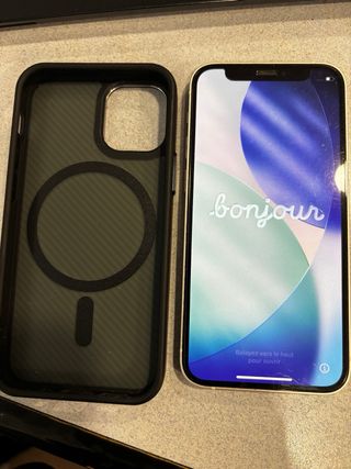 Telefono cellulare iPhone 12 Mini in ottime condizioni. - Schermo da 5,4 pollici. - Design compatto e leggero. - Fotocamera doppia da 12 MP. - Batteria al 76%. - Con custodia nera compatibile 'magsafe'