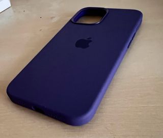 Custodia in silicone per iPhone 12 Pro Max di colore viola. Materiale in silicone morbido al tatto. Design che copre la parte posteriore e i lati del telefono. Interno rivestito per proteggere il dispositivo.
