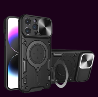 Elegante custodia nera per iPhone 12 Pro Max. Design robusto di grado militare con anello magnetico per supporto. Include la custodia e l'anello. - Anello girevole per facilitare la manovrabilità. - Protezione completa per il telefono. - Design magnetico per il supporto. - Finitura di alta qualità.