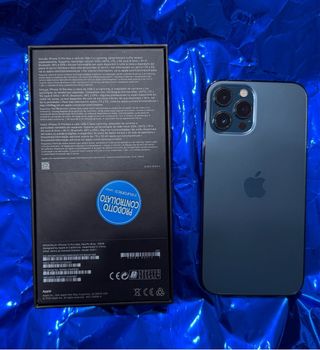 Telefono cellulare iPhone 12 Pro Max in colore blu e perfetto stato estetico e funzionale. Capacità di archiviazione 128GB. Capacità batteria: 73%. Schermo originale. Si include scatola e cavo (non usati).
