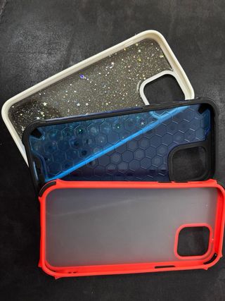 Vendo set di cover per iPhone 13 Pro Max. Poco usate e ben curate (tranne l'ultima che ha qualche macchia all'interno). Aggiungo un vetro temperato 9H se acquisti il set completo. Prezzo unitario da sinistra a destra: 12 - 10 - 5 - 8.