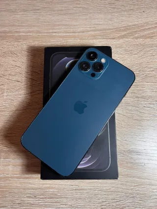 Telefono cellulare iPhone 12 Pro Max da 256 GB in colore Blu Pacifico. In ottime condizioni di funzionamento. Salute della batteria 83%. Senza colpi né graffi. Utilizzato sempre con custodia e protezione. Aggiornato a iOS 26.2. Include cavo di ricarica e protezione con lievi segni d'uso.