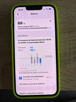 Telefono cellulare in ottime condizioni. Capacità di 128GB. Colore verde. Schermo in ottime condizioni, senza crepe. Funzionamento: tutto funziona perfettamente (Face ID, fotocamere, altoparlanti, pulsanti). Batteria: buone prestazioni per l'uso quotidiano (90%). Stato generale: molto curato, con lievi segni normali di utilizzo. Include: scatola originale, cavo di ricarica. Altri dettagli: senza blocchi operatore, senza iCloud, ripristinato di fabbrica e pronto all'uso. Consegna: consegna a mano a Malaga, spedizione tramite Wallapop. 💬 Per qualsiasi domanda, scrivimi. 💶 Il prezzo è leggermente negoziabile.
