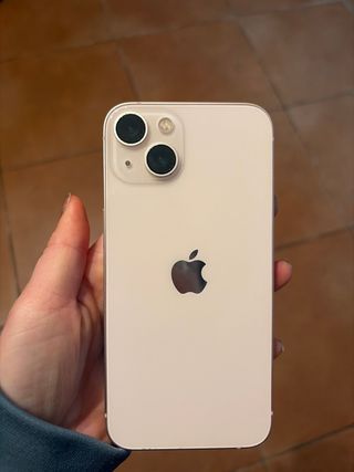 Telefono cellulare iPhone 13 con finitura in colore rosa. Capacità di archiviazione di 128GB.