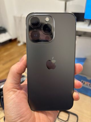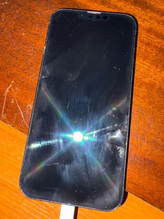 Telefono cellulare iPhone 13 Pro in colore nero. - Schermo da 6,1 pollici. - Sistema a tripla fotocamera. - Chip A15 Bionic. - Lo schermo posteriore è rotto. - La modalità cinema della fotocamera e 05 non funziona.
