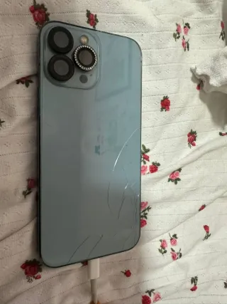 Telefono cellulare iPhone 13 Pro Max con 128GB di spazio di archiviazione. - Schermo da 6,7 pollici. - Sistema di tripla fotocamera posteriore. - Chip A15 Bionic. - Schermo posteriore rotto, Apple Play funziona senza problemi - Face ID non funziona