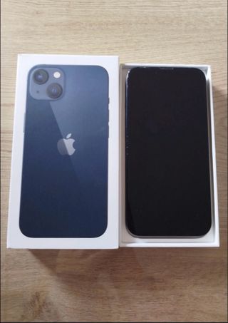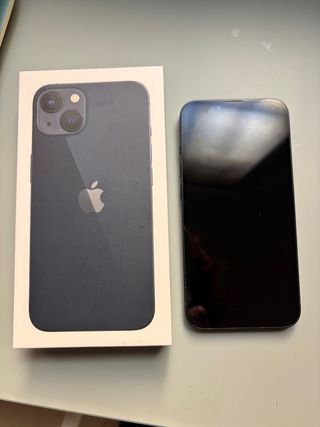 Telefono cellulare iPhone 13 in colore blu marino. Presenta alcuni segni d'uso. - Schermo di alta qualità. - Fotocamera doppia. - Design elegante. Lo schermo si accende ma non si vede. Il retro ha un problema con il vetro.