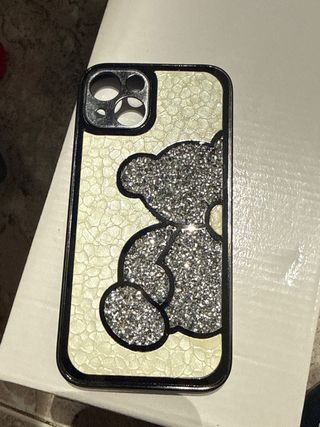 Custodia per iPhone 13 con un design orso luminoso. - Parte posteriore con texture. - Dettagli di paillettes. - Cornice protettiva.