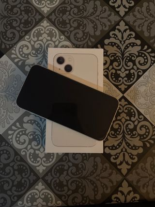 Telefono cellulare iPhone 13 in bianco, ideale per ottenere componenti. - Cover posteriore con rotture. - Batteria 74% - Fotocamera 0,5 danneggiata. Perfetto per le parti, tutto il resto è in buone condizioni. Include la scatola originale. ACCETTO OFFERTE