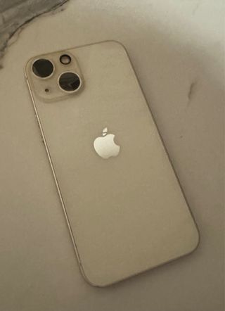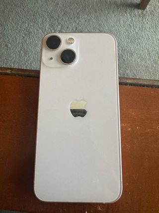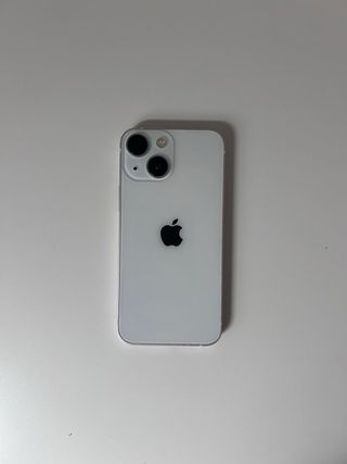 Telefono cellulare iPhone 13 mini. - Schermo da 5,4 pollici. - Finitura in bianco. - Capacità di archiviazione di 128 GB. Ha una crepa sulla fotocamera posteriore ma non influisce sulla qualità delle foto.