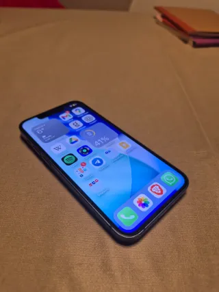 Vendo iPhone 13 mini da 128 GB, colore blu, in ottime condizioni. Schermo perfetto, senza graffi (molto ben curato, anche se non ha protezione per lo schermo). Nessuna abrasione o urto. Funziona perfettamente. Salute della batteria: 77%. Include scatola originale. Modello libero, valido per qualsiasi compagnia. Telefono molto curato, ideale per chi cerca un iPhone compatto, potente e in ottime condizioni. Prezzo: 320€ (trattabile)