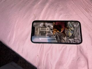 iPhone 13 mini in colore blu con 128gb di spazio di archiviazione. Batteria al 69%, a volte carica e altre no. È possibile vedere nella foto il coperchio posteriore leggermente rotto. Lo schermo è stato sostituito. Il Face ID funziona.