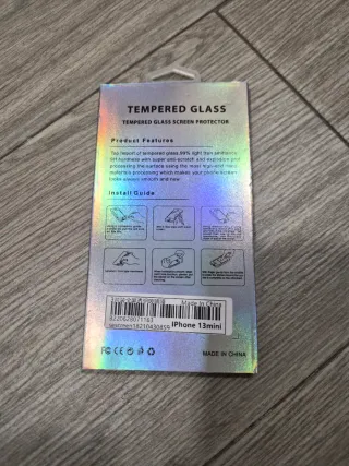 Protezione per schermo in vetro temperato per iPhone 13 mini. - Alta definizione (HD). - Anti-impronte. - Include panni umidi e secchi. - Include adesivi guida e antipolvere.