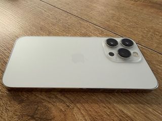 Telefono cellulare iPhone 13 Pro con finitura oro o argento. Batteria all'80%.