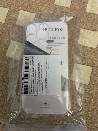 Custodia trasparente per iPhone 13 Pro. - Materiale: TPU - Design a copertura totale per la fotocamera. - Bordo di 0,5 mm più alto dello schermo per proteggerlo.
