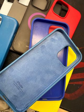 Custodia per iPhone 13 Pro Max con tecnologia MagSafe. Colore verde. Compatibile con MagSafe. Protezione per la fotocamera. Si vendono insieme o separatamente. 20 per ogni custodia. La beige è più usurata, quella costa 10.