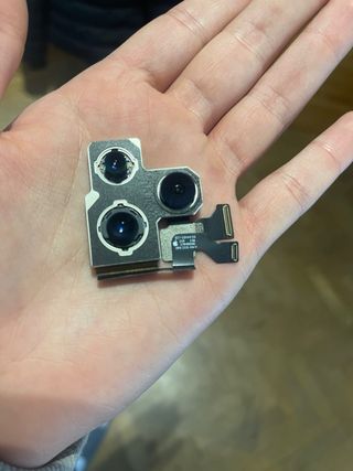 Modulo fotocamera per iPhone 13 Pro e Pro Max. Compatibile con modelli iPhone 13 Pro e Pro Max. Componente di ricambio per il sistema di fotocamere. Funziona la fotocamera principale e 0,5. Premendo due volte sulla principale passa alla 0,5X, non funziona la 3X da qui il suo prezzo.