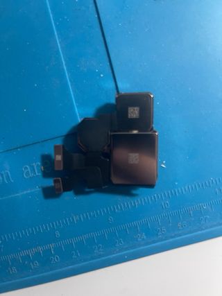 Pezzi di iPhone 13 Pro Max per smontaggio. Si vende il telefono completo, tranne la scheda madre. Modello A2653. Componenti interni visibili: batteria, Taptic Engine, fotocamera (si vede sfuocata la x3). Face ID ok. Connettore ok. Altoparlanti ok. Telaio perfetto.