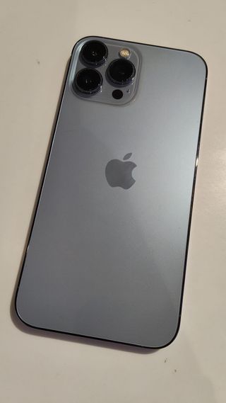 Telefono cellulare iPhone 13 Pro Max con finitura grigia. Capacità di archiviazione 128GB. Nella terza foto, i segni sullo schermo protettivo sono nuovi e originali. Nella quarta foto, nella parte superiore del cellulare ci sono segni d'uso quasi impercettibili. Il telefono è ben curato. PREZZO TRATTABILE
