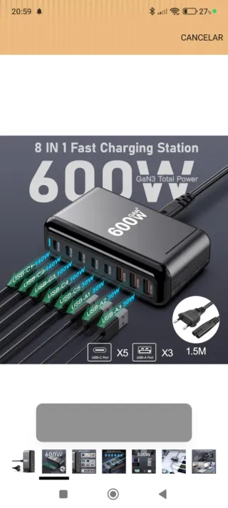 Caricabatterie USB 600W 8 porte USB nuovo