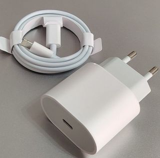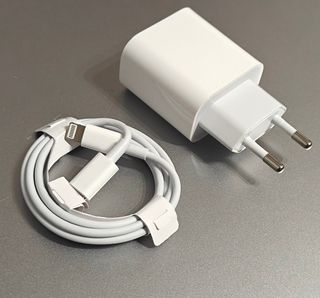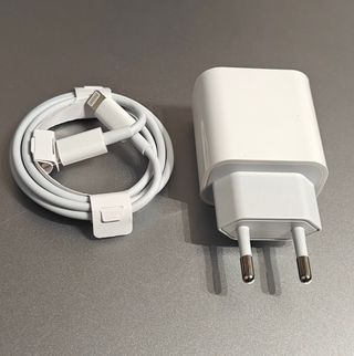 In vendita caricatore iPhone Apple da 20W con porta USB-C e cavo USB-C a Lightning. Compatibile con iPad e iPhone 8, 9, 10, 11, 12, 13, 14 Pro/Max. - Adattatore di corrente da 20W. - Cavo da 1 metro di lunghezza. Spedizioni Wallapop.