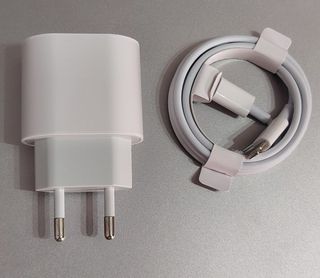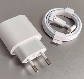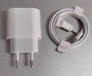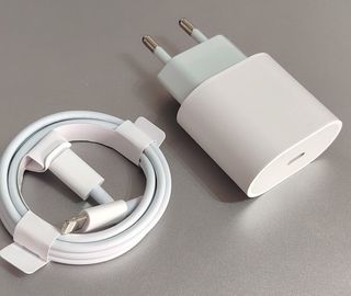 Adattatore di corrente USB-C da 20W con cavo USB-C a Lightning. Compatibile con iPhone 13 Pro Max. Include adattatore di corrente e cavo.