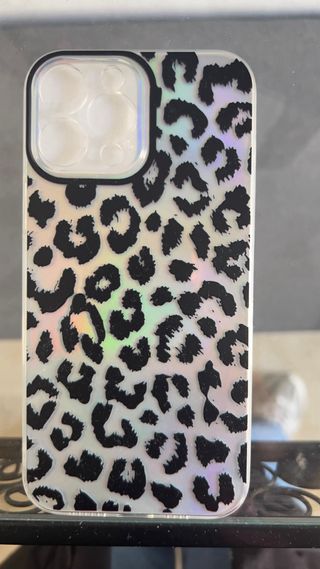 Custodia per iPhone 13 Pro Max con design leopardato. - Stampa leopardata in bianco e nero. - Protezione per la fotocamera. - Prodotto in Cina.