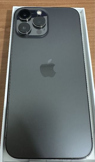 Telefono cellulare iPhone 13 Pro Max in colore grafite nero. Include cavo di ricarica (non la presa).
