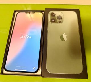 Scatola iPhone 13 Pro Max in colore verde in perfetto stato, include cavo originale