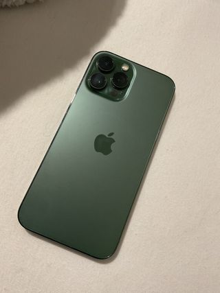 Telefono cellulare iPhone 13 Pro Max in colore verde. Quasi nuovo, ha 6 mesi di garanzia originale Apple. Design elegante e moderno. Finitura opaca sul retro.