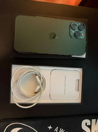 Vendo iPhone 13 Pro Max in accattivante colore verde alpino. Capacità di 256GB. Con scatola originale e cavo di ricarica. Batteria all'82%. Unico proprietario e tutti i componenti originali. In perfette condizioni, sempre utilizzato con protezione dello schermo e custodia. In regalo le 7 custodie che ho per il telefono.