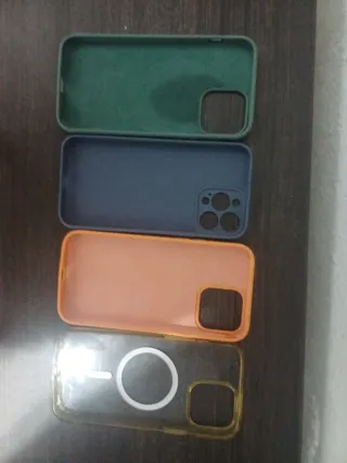 Tre cover protettive per iPhone 13 Pro Max. 5 euro per 3. - Cover rosa. - Cover verde menta. - Cover viola.